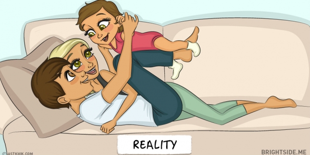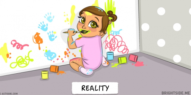 常常在Facebook看到朋友們和Baby的幸福照?不用羡慕別人,以下來自俄羅斯的漫畫家Astkhik Rakimova的作品,將會如實告訴你「理想」和「現實」的差別